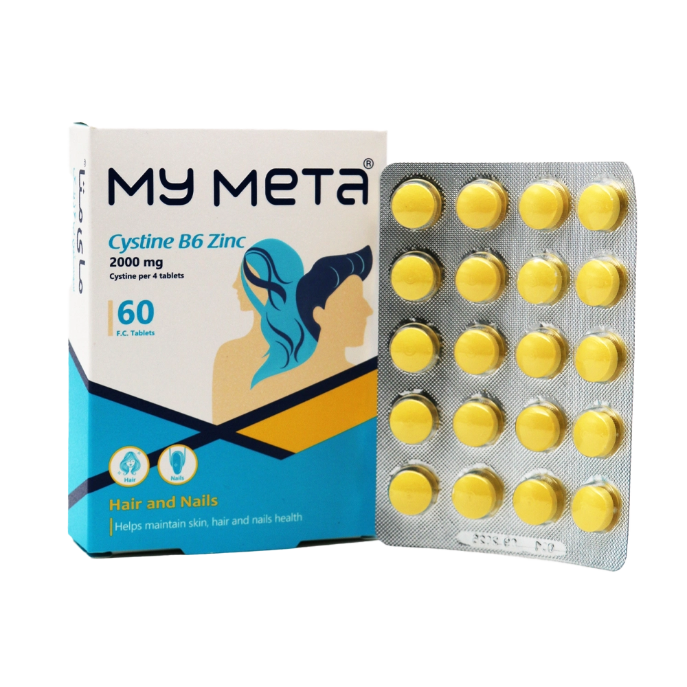Cystine B6 MYMETA یکی از  مکمل های رایج برای جلوگیری از ریزش مو و سلامت پوس و ناخن است. سیستین ب 6 زینک مای متا با تاثیر بر سلولهای پوستی میتواند بر رشد ناخن ها و مو اثر گذار باشد. از آنجایی که سیستین یکی از مواد سازنده پوست، مو و ناخن است بنابراین تقویت کردن این ماده میتواند بر سلامت پوست و موی ما اثر مثبت بگذارد. در کنار سیستین در مکمل مای متا، ویتامین B6 برای جذب بهتر این ماده موثر قرار دارد تا تاثیر مکمل افزایش یابد.